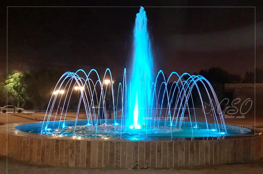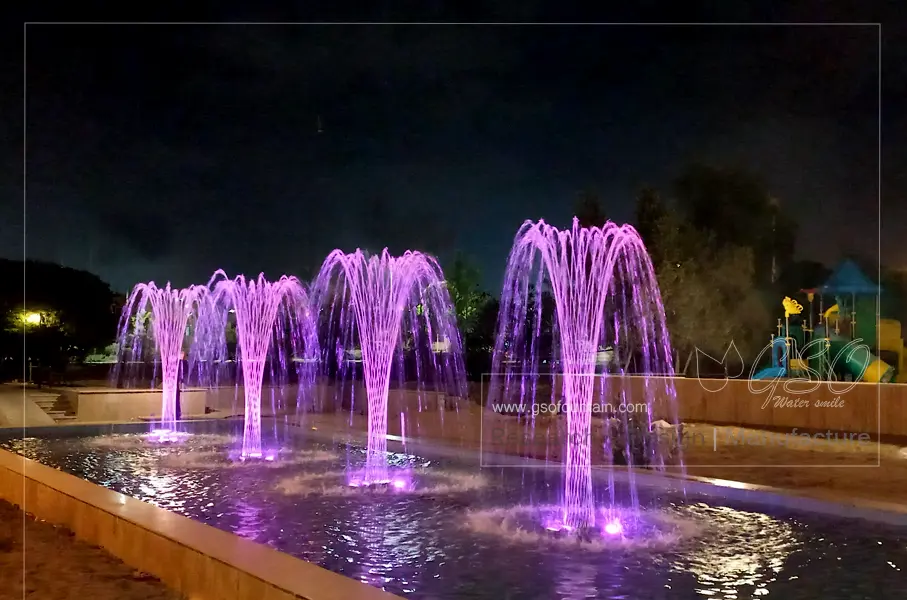 نوع نازل آبنما: نازل آبنمای کرون چهار دستگاه - آبنمای ژله ای ریتمیک یک دستگاه