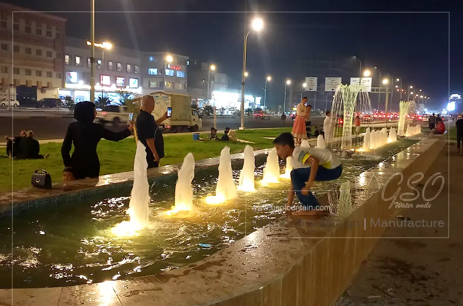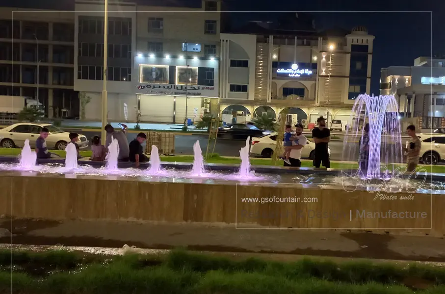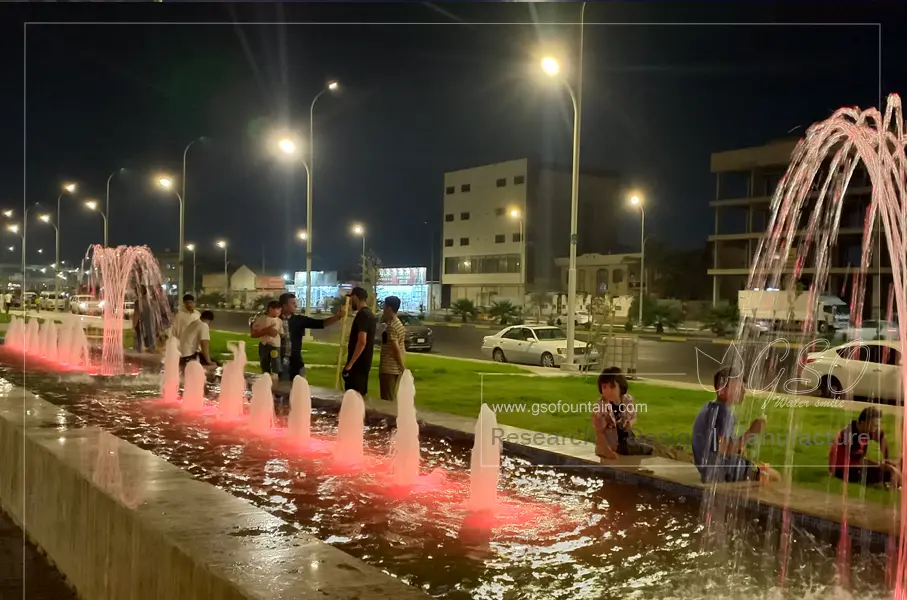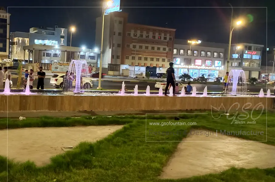 توضیحات: با توجه به اینکه کشور عراق، دارای آب و هوایی نسبتا گرم و خشک می باشد و با توجه به موقعیت قرار گیری آبنما که در مکانی عمومی در کنار خیابان قرار داشت تصمیم به برپایی آبنمای موزیکال گرفته شد که هم مهیج و سرگرم کننده باشد و هم بعلت پویایی این نوع آبنماها خنکی بیشتری را بابت پرتاب قطرات آب به اطراف ایجاد کند. حاصل این تصمیم ایجاد یک آبنمای بسیار مفرح و زیبا در حاشیه خیابان گردید که تماشاگران زیادی را به خود جلب کرد و موجب رضایت کارفرمای محترم گردید.